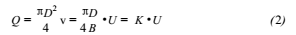 式(1)說(shuō)明,導(dǎo)體在磁場(chǎng)內(nèi)作切割磁力線運(yùn)動(dòng),導(dǎo)體兩端產(chǎn)生的感應(yīng)電動(dòng)勢(shì)的大小與磁感應(yīng)強(qiáng)度B成正比,與導(dǎo)體的長(zhǎng)度D成正比,與導(dǎo)體運(yùn)動(dòng)的速度v成正比。由式(2)可知液體的體積流量與感應(yīng)電動(dòng)勢(shì)成正比,這就是酒精流量計(jì)的設(shè)計(jì)原理。