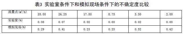 實驗室條件下和模擬現場條件下的不確定度比較(表3)兩次結果可以看出,兩次實驗各個流量點的不確定度差距非常大??梢姡?strong>化工污水流量計對安裝條件還是比較苛刻的。