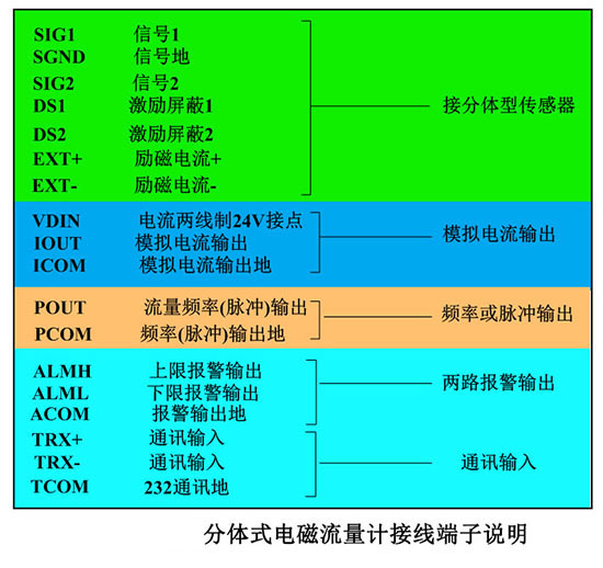 污水管網現場收方計量表接線端子分布圖