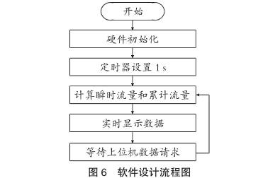 上電后程序?qū)SP的硬件資源進(jìn)行初始化,包括中斷系統(tǒng)、GPIO口、定時器/計(jì)數(shù)器、通信端口及基本的時鐘設(shè)置。程序每秒對接收到的脈沖進(jìn)行計(jì)數(shù),其除以儀表系數(shù)后的結(jié)果作為瞬時流量,同時在時間上對瞬時流量進(jìn)行累積,計(jì)算出兩種流量后,將其實(shí)時顯示在液晶顯示屏上,同時將數(shù)據(jù)保存,**等待上位機(jī)電腦對數(shù)據(jù)的讀取。通信采用MODBUS協(xié)議,波特率為9600b/s,無校驗(yàn),8位數(shù)據(jù)位,1位停止位。圖6為微處理器功能設(shè)計(jì)流程圖。