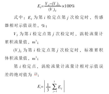 實(shí)驗(yàn)中每個(gè)流量點(diǎn)均進(jìn)行3次測(cè)量,(j=1,2,3),3次測(cè)量的平均儀表系數(shù)作為此流量點(diǎn)的儀表系數(shù)Ki(i=1,2,3,4,5),各流量點(diǎn)儀表系數(shù)*小值與*大值的平均值,作為傳感器的儀表系數(shù)。