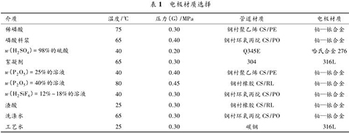 國內(nèi)某 300 kt/a 磷酸裝置中,含有不同溫度、不同壓力、不同濃度的多種酸液,包括:稀磷酸、濃硫酸、磷酸料漿、絮凝劑、P 2 O 5 溶液、H 2 SiF 6 溶液、渣酸、洗滌水、酸性循環(huán)水、工藝水等。如此復(fù)雜的工藝介質(zhì)對(duì)流量計(jì)的選型要求很高,酸液的配比、濃度、溫度、雜質(zhì)、溶解氣體以及流速等都會(huì)影響接液材質(zhì)的耐腐蝕性。
