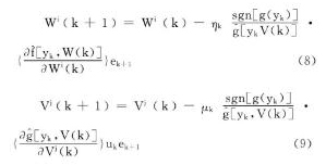 未知, 但其符號已知, 可用sgn[g (yk) ]代替g (yk) , 這樣就可以得到調整W (k) 和V (k) 的學習規則為