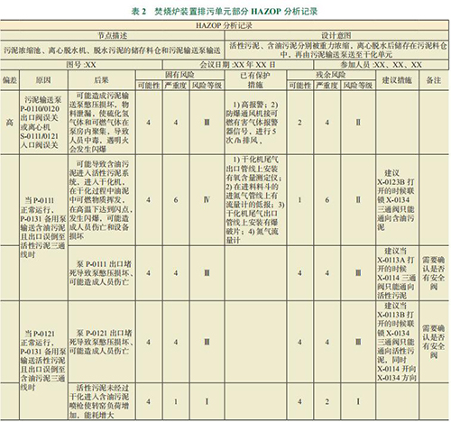 本次分析組的主要人員有:企業對夾式渦街流量計分析組以及焚燒爐裝置工藝工程師、設備工程師、儀表工程師、安全工程師和操作班組長。本次分析主要依據公司級相關標準和規范:《健康安全環境風險標準》以及《危險與可操作性分析(對夾式渦街流量計)規范》,并于 1 個月內對焚燒爐裝置進行了分析,發現了部分重大的風險和隱患。按建議措施對應的風險等級劃分,其中包括:Ⅳ級嚴重風險(限期整改強制性措施);Ⅲ級高度風險(限期整改強制性措施);Ⅱ級中度風險(期望改進推薦性措施);Ⅰ級可接受風險(建議性措施)。本報告僅逐一列出部分較高或容易忽視的風險(其他在對夾式渦街流量計分析的記錄中體現)。評估發現:本次分析評估共發現三級風險 25 項(類),其中排污單元三級風險 2 項(類)。其中,焚燒爐裝置排污單元分析記錄內容如表 2 所示。