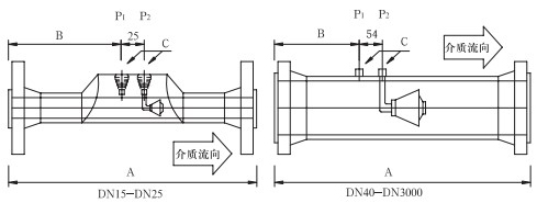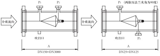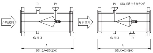 取壓口法蘭公稱直徑(標準設計)為DN40,也可以依據用戶要求選取法蘭直徑。