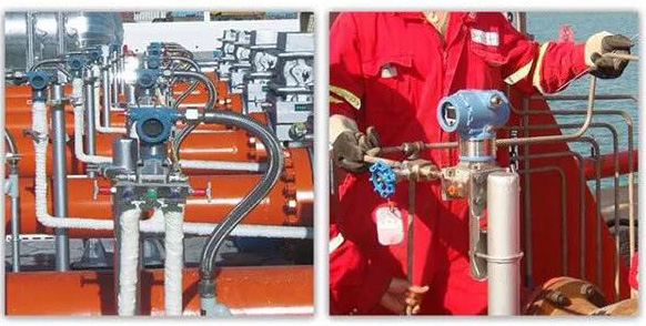 8、高溫壓力變送器安裝時應在變送器和介質之間加裝壓力截止閥,以便檢修和防止取壓口堵塞而影響測量精度,在壓力波動范圍大的場所還應加裝壓力緩沖裝置。