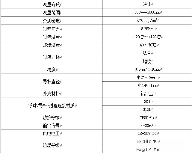 二、遠傳浮球液位計的參數