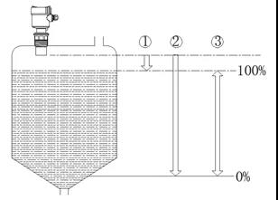 ①為滿 ②為空(*大測量間距) ③測量范圍