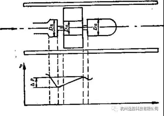由于流體通過渦輪時會對渦輪產生一個軸向推力,使鈾承的摩擦轉矩增大,加速鈾承磨損,為了消除軸向力,需在結構上采取水力平衡措施,這方法的原理見下圖所示。由于渦輪處直徑DH略小于前后支架處直徑Ds,所以,在渦輪段流通截而擴大,流速降低,使流體靜壓上升P,這個P的靜壓將起到抵消部分軸向推力的作用。