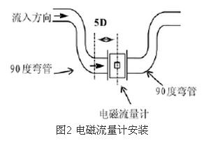 為獲得儀表測(cè)量精確度,在傳感器上游側(cè)的直管段長(zhǎng)度不小于5D,下游側(cè)不小于3D(D為傳感器的名義直徑)。若在傳感器上游側(cè)有兩個(gè)以上的彎頭或其它阻流件,則前置直管段應(yīng)大于10D。